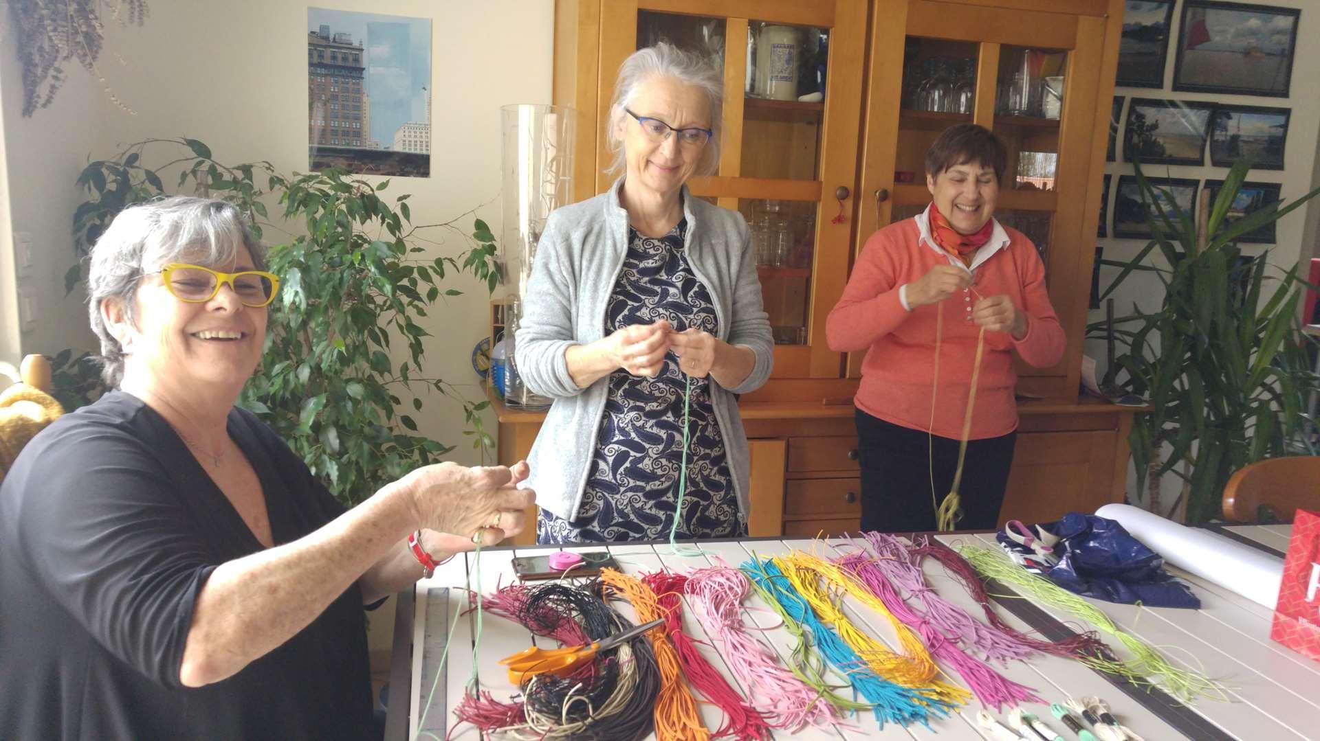C'est incroyable cet atelier, on y faut de ces choses ! maintenant des tresses ... moi j'ai cru que c'était pour des scoubidous tous ces fils de couleur, je trouvais ça bizarre mais bon à Cantarane, le petit grain de folie n'est jamais bien loin.